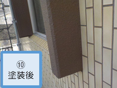 外壁はクラックの補修と爆裂部の補修後、塗装工事を施工。