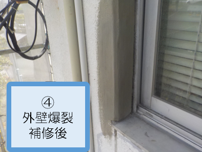 外壁はクラックの補修と爆裂部の補修後、塗装工事を施工。