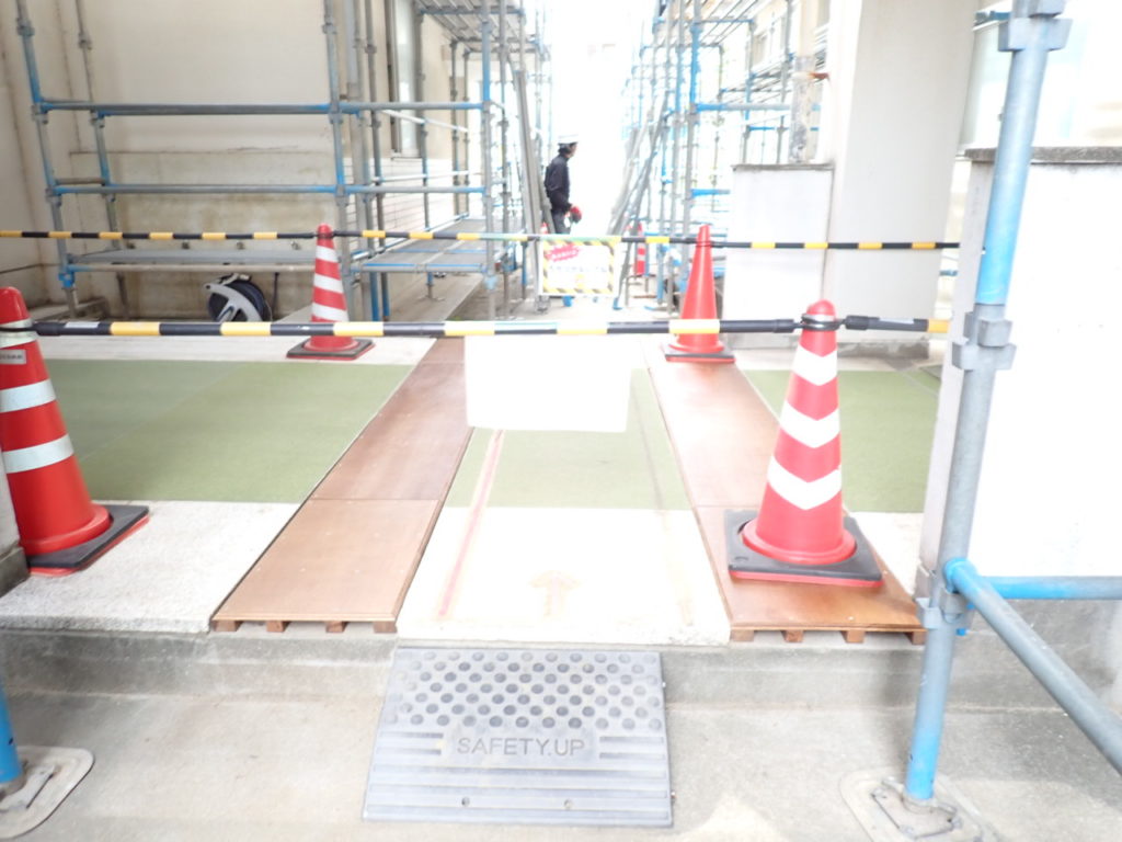こちらは毎日多くの児童が行き来する渡り廊下。今回の工事で迂回路に使わせていただいている通路でもあります。