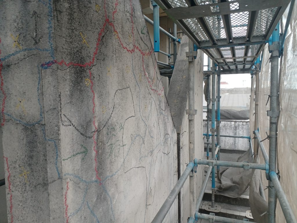 さて、現場では建物の耐久性と美観を維持するための、外壁劣化箇所改修工事が進行中です。